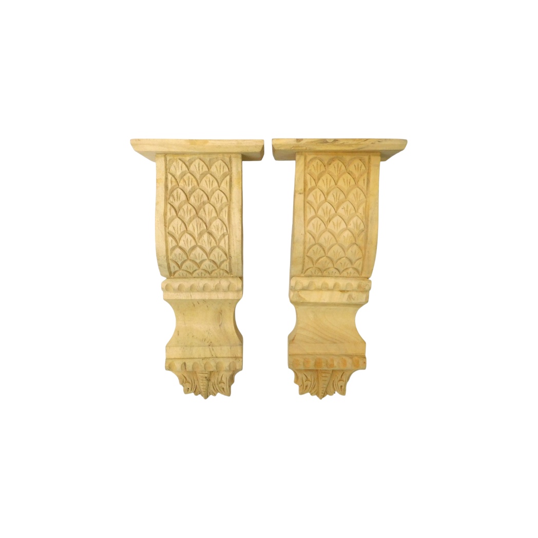 Perfect om als stijlvolle ondersteuning voor planken of als op zichzelf staande decoratieve elementen te gebruiken, voegen deze handgemaakte consoles een vleugje ambachtelijke charme toe aan uw interieur.