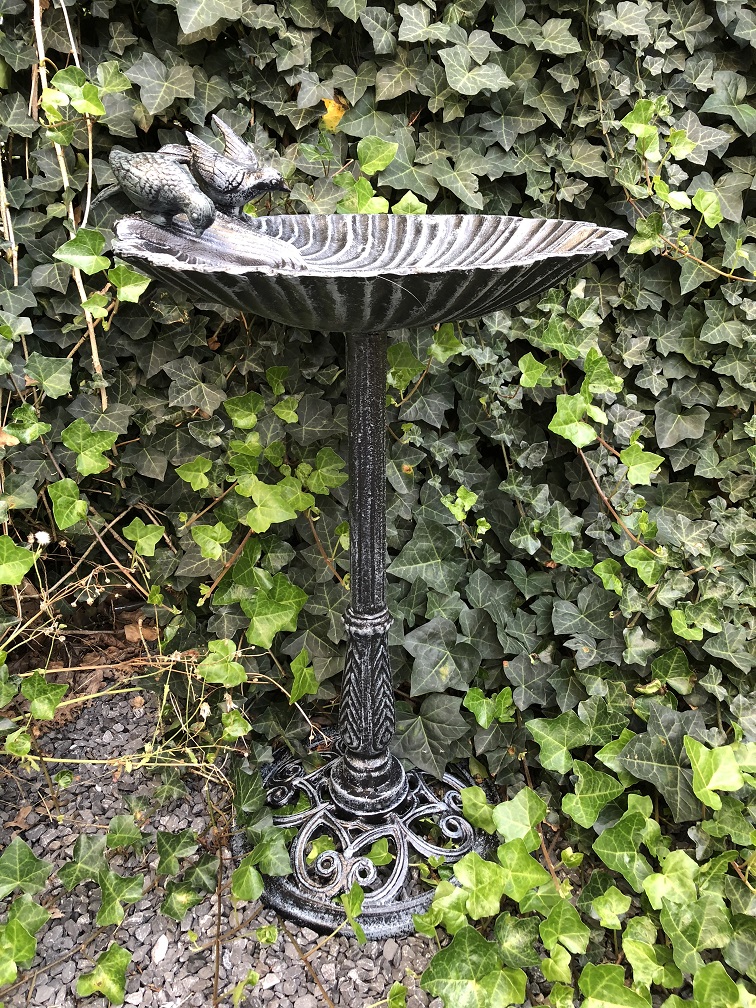 Vogelbad op voet – 80 cm – gietijzer, zwart/grijs.