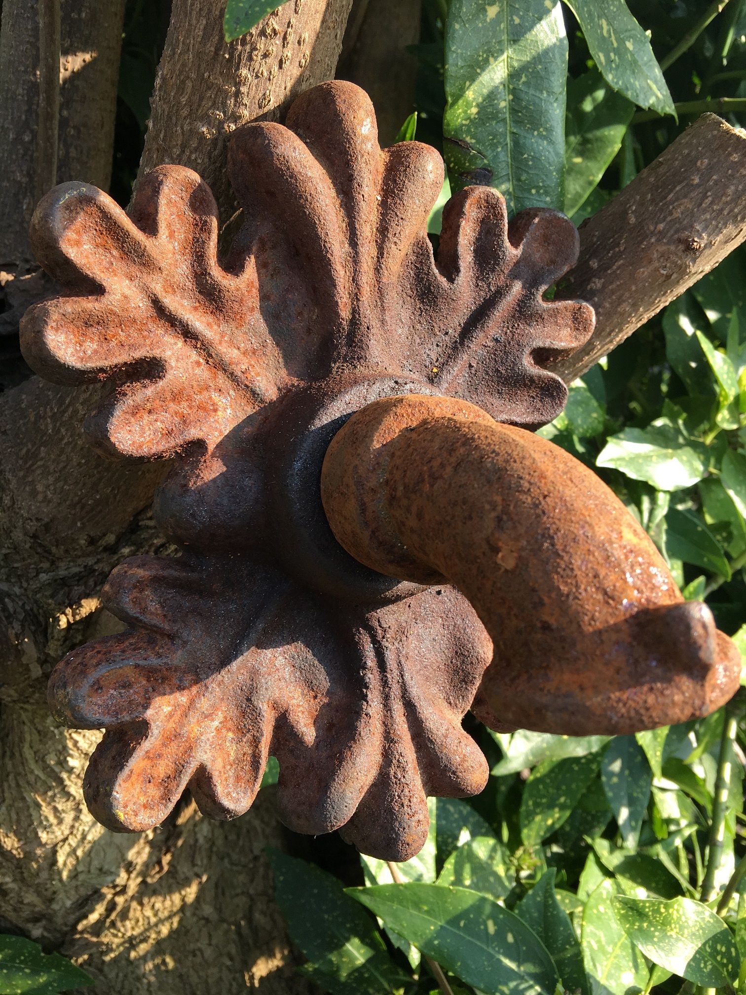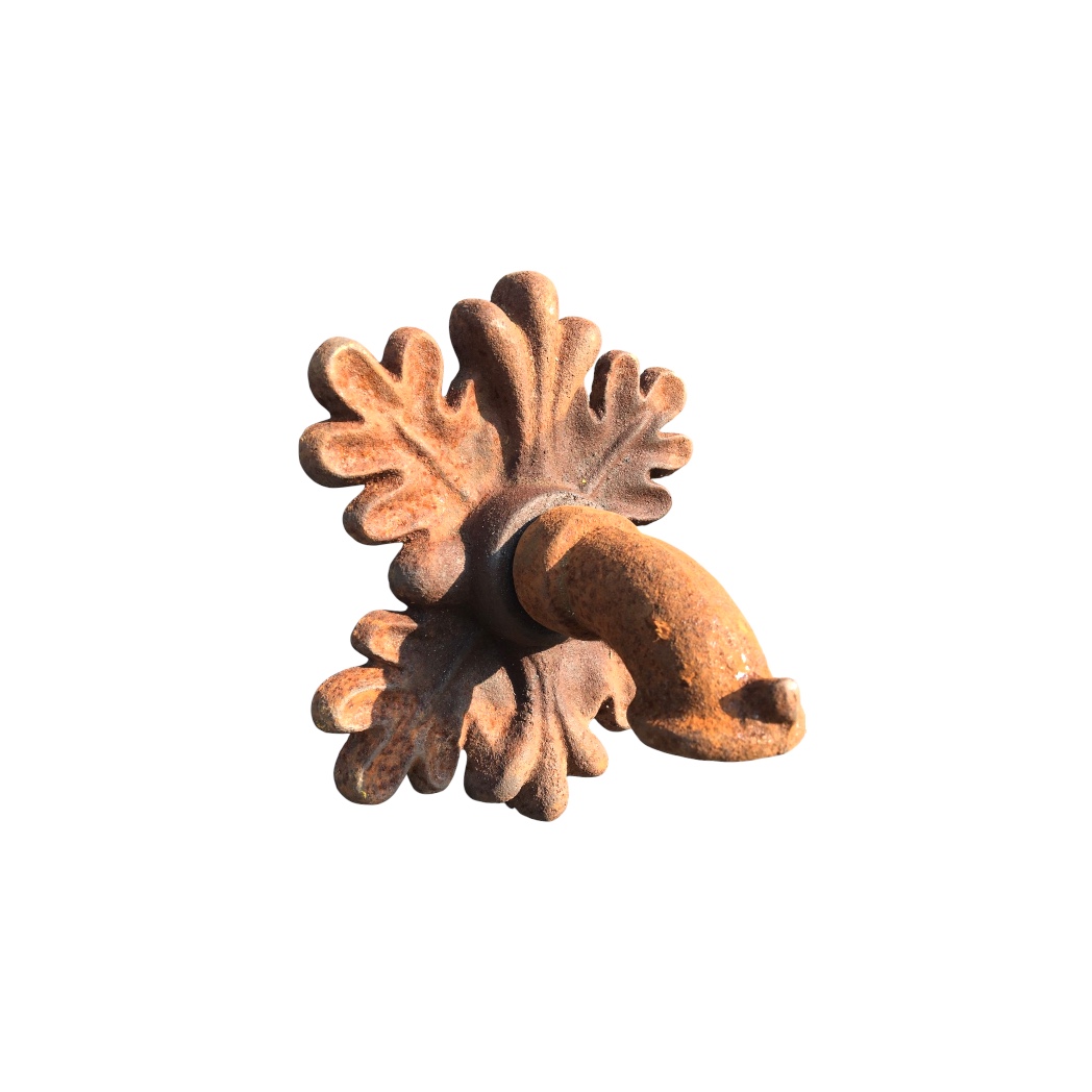 Een bijzondere waterspuwer met rijke historische uitstraling, uitgevoerd in massief gietijzer met een roestfinish. De combinatie van het klassiek gestileerde eikenblad en het Neptunus-kopje vormt een decoratief geheel dat elke muurfontein of tuinmuur een karaktervolle en antieke aanblik geeft.