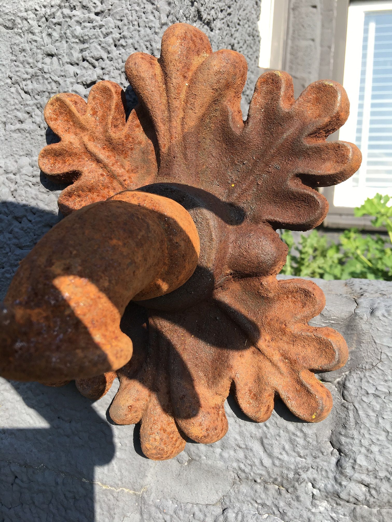 Leveringsomvang: 1 waterspuwer Neptunus met eikenbladornament, gietijzer – roestkleurig.