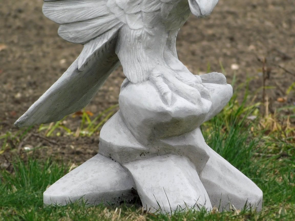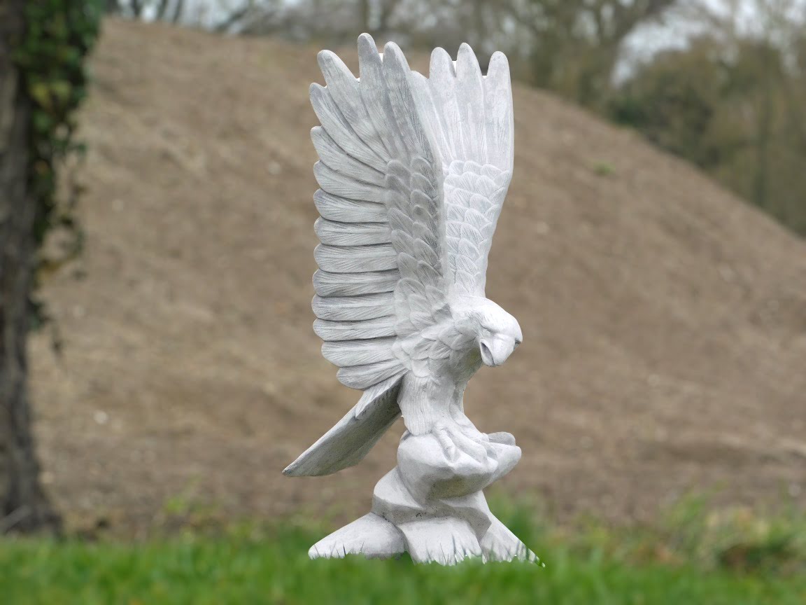 Tuinbeeld adelaar van steen - 95 cm hoog met de vleugels omhoog - imposante tuindecoratie.