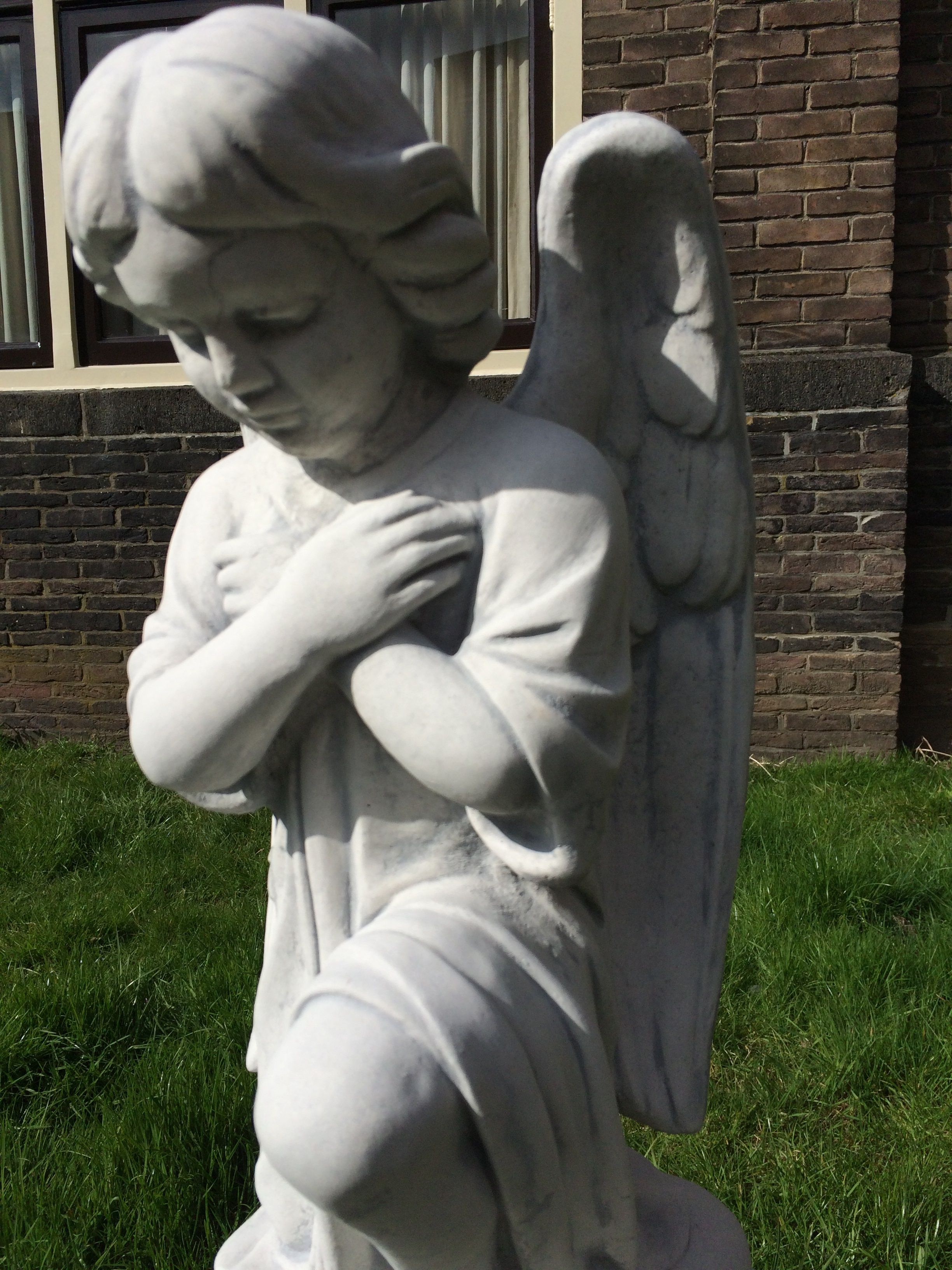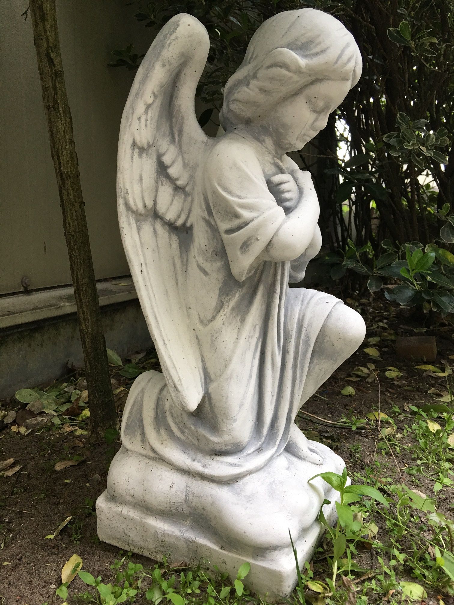 Knielende engel - stenen beeld - 58 cm - armen gekruist.