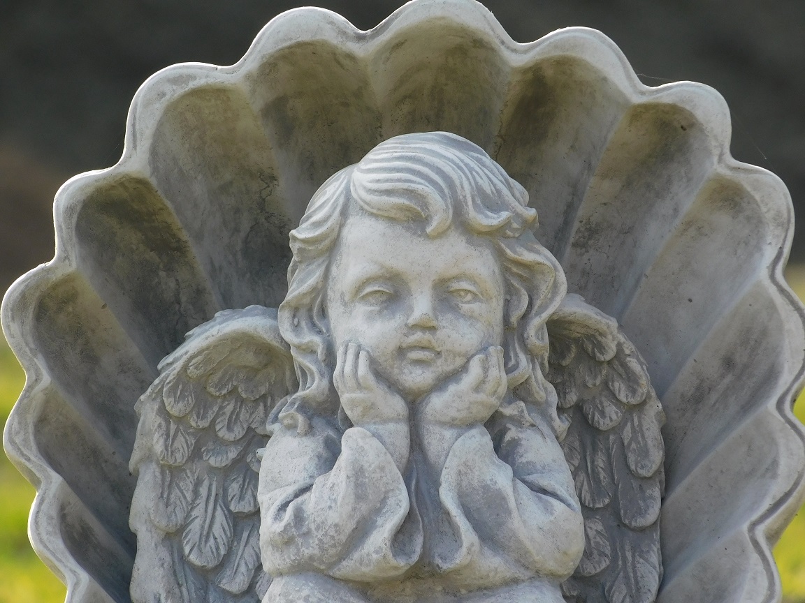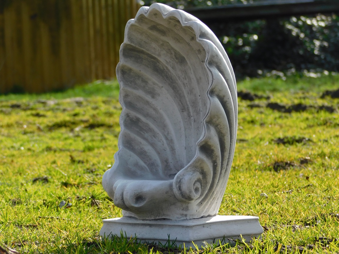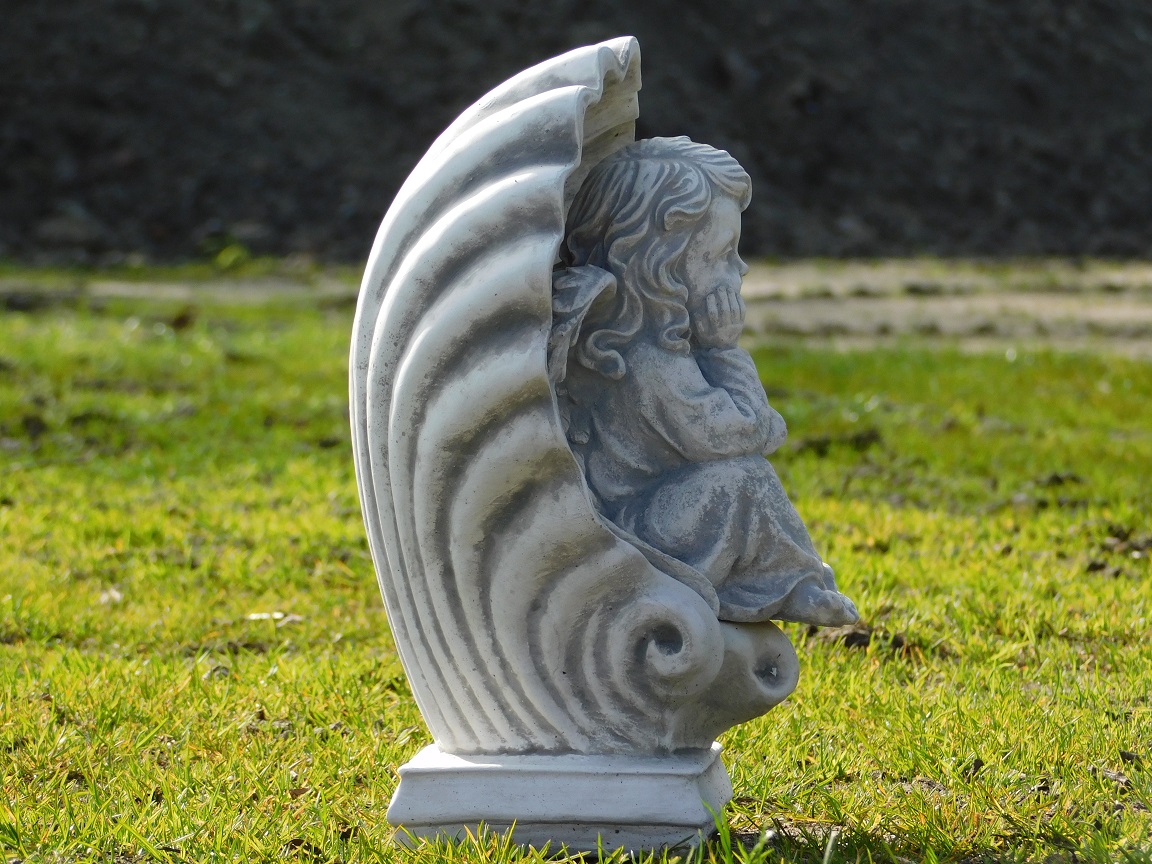 Leveringsomvang: 1x beeld schelp + engel, steen.