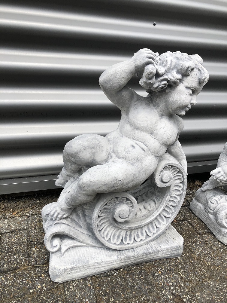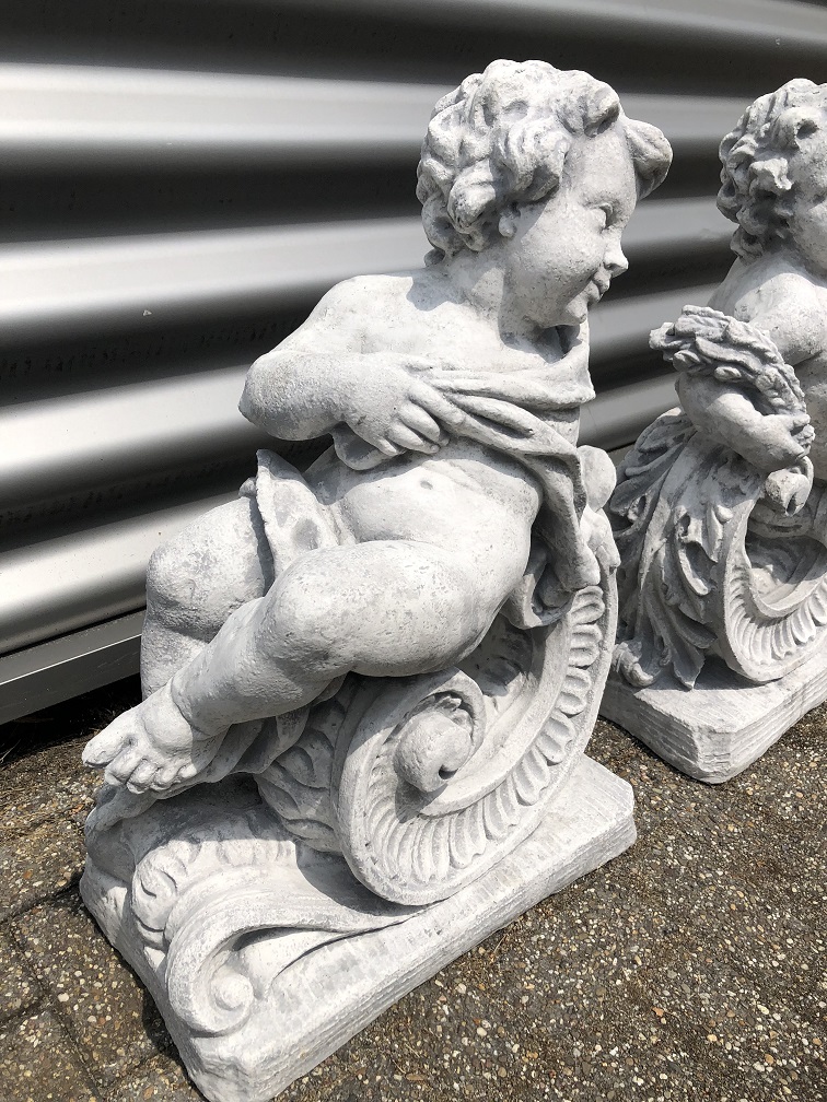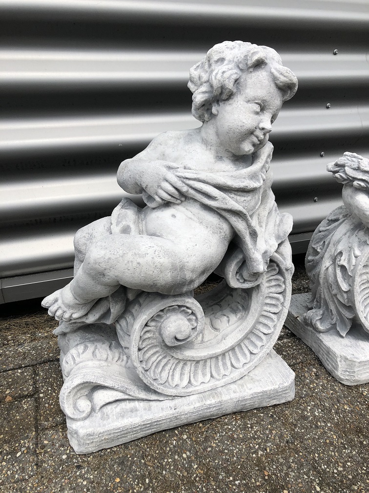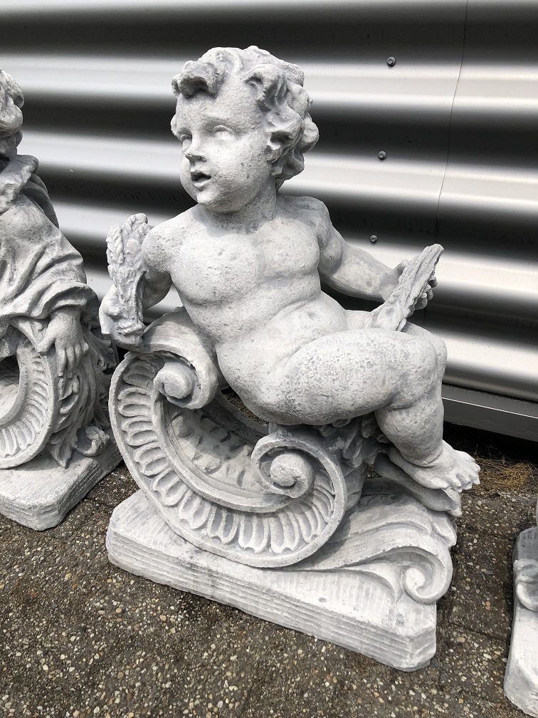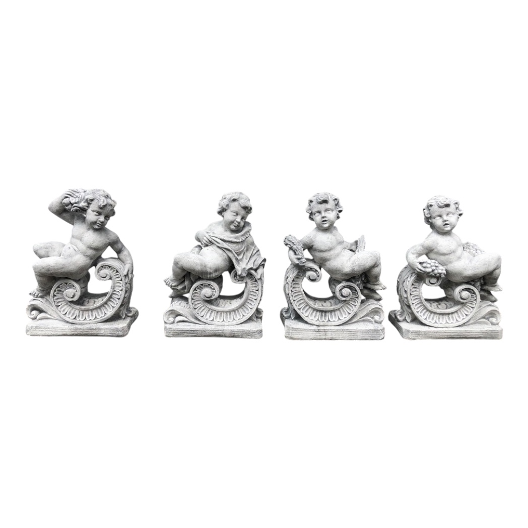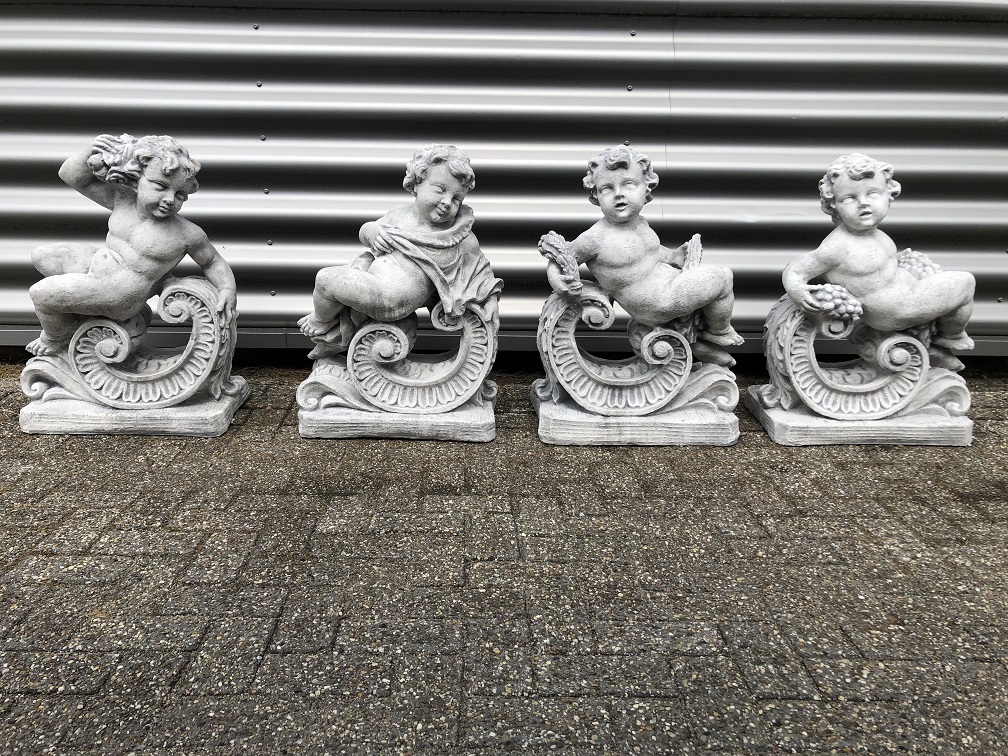 Set van 4 engelen - jaargetijden op krul - steen - 81 cm.