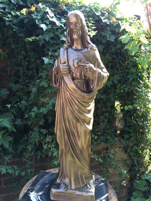 Leveringsomvang: 1x Jezus Heilig Hart beeld, steen, bronzen kleur.