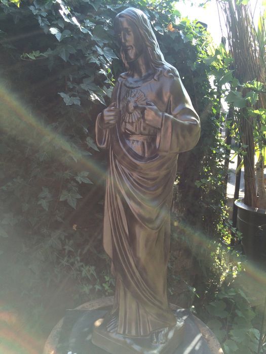 Jezus - Heilig Hart - stenen beeld - 120 cm - bronzen kleur.