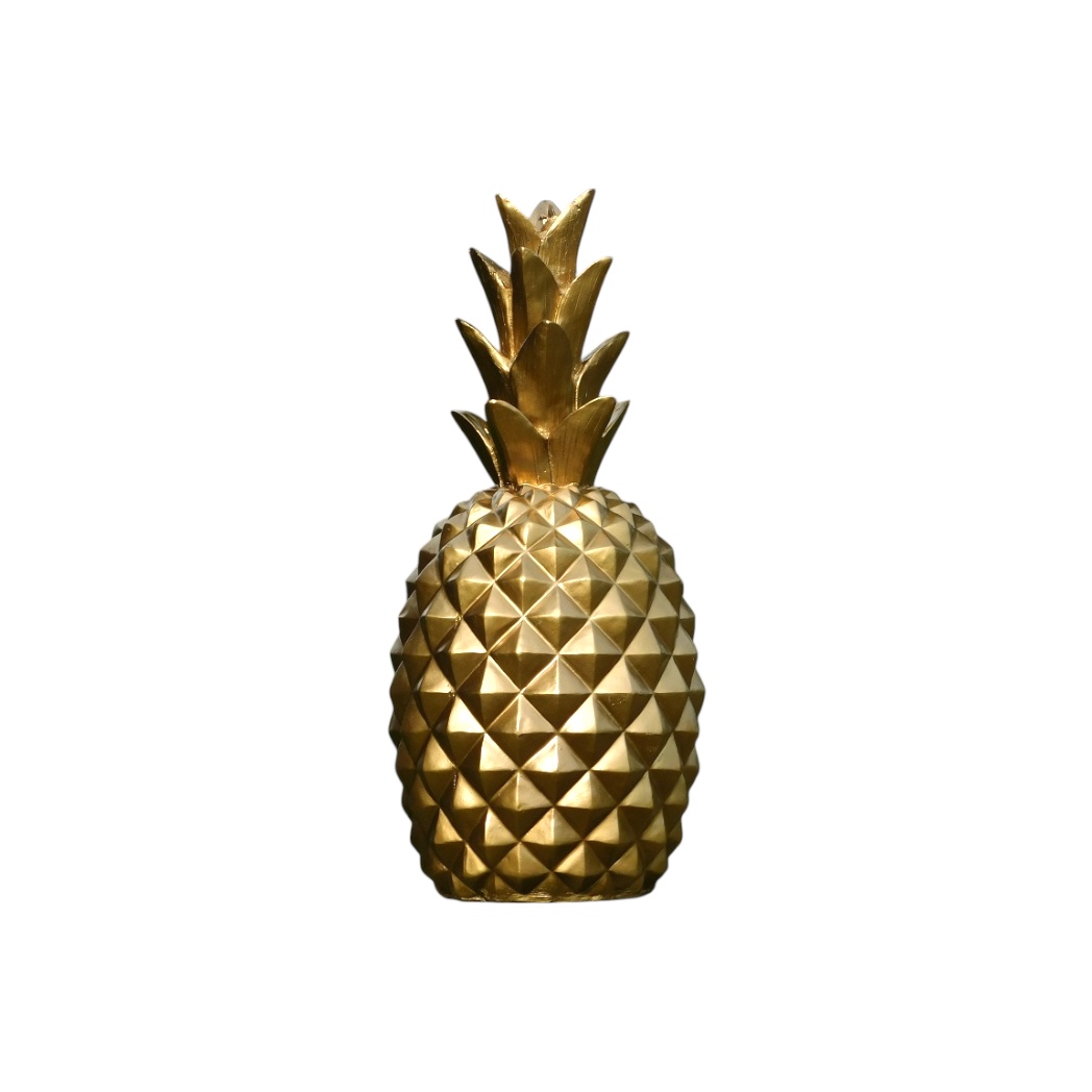 Breng een speelse, maar chique uitstraling in je interieur of tuin met deze goudkleurige ananas van hoogwaardig polystone. Met een indrukwekkende hoogte van ca. 68 cm en een diameter van 30 cm vormt dit decoratieve beeld een stijlvolle eyecatcher. De gedetailleerde afwerking en glanzende goudtint geven het geheel een luxueuze en elegante uitstraling.