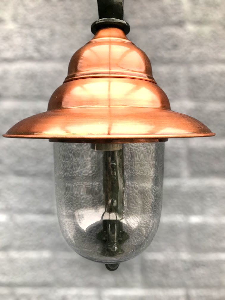 Het armatuur is vervaardigd uit aluminium en gecombineerd met een koperen kap, wat zorgt voor een duurzame en weerbestendige constructie. Door materiaalkeuze en vormgeving heeft deze nostalgische buitenlamp een exclusief karakter en valt hij direct op aan iedere buitenmuur.