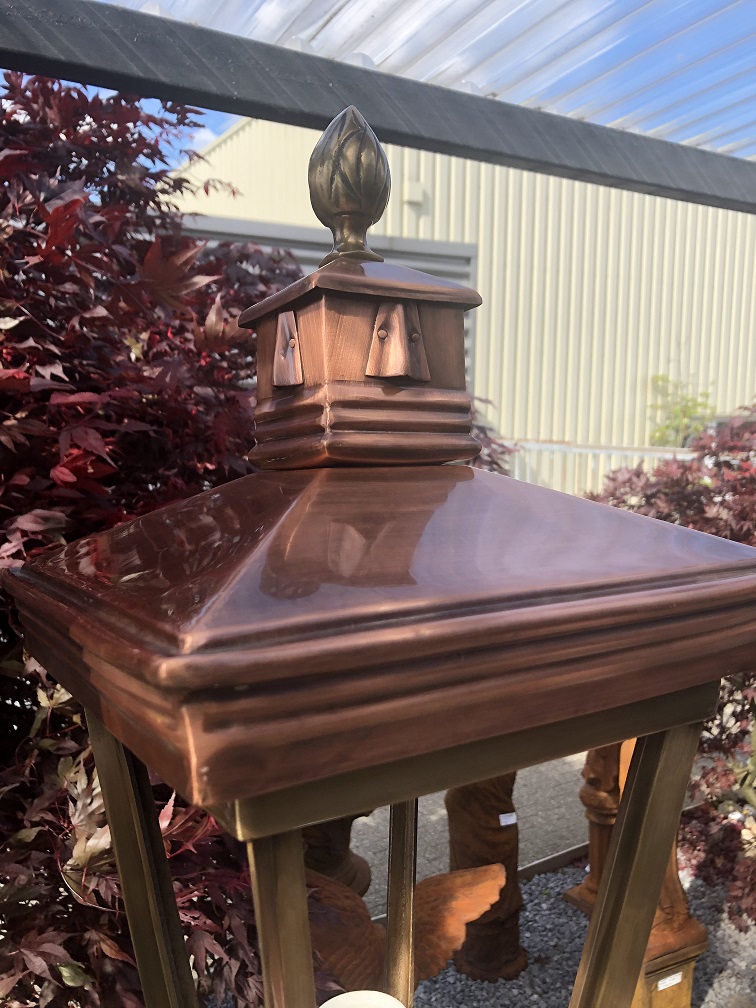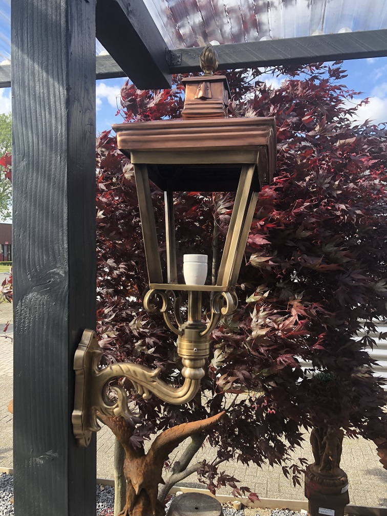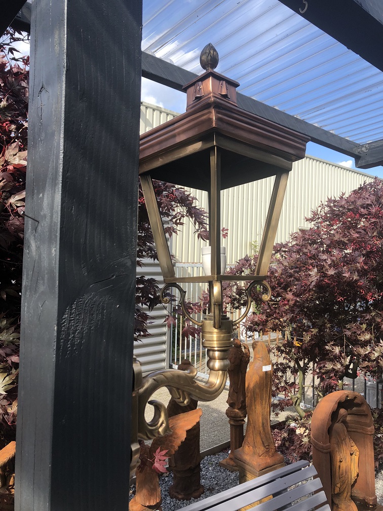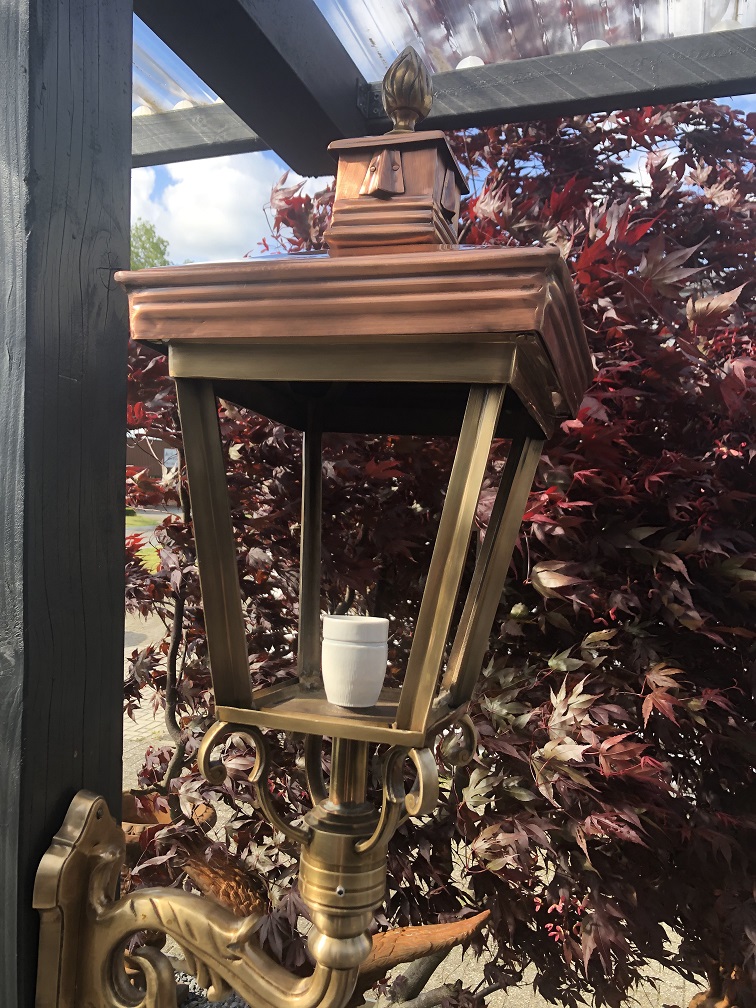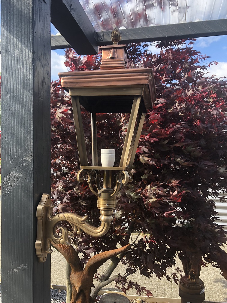 Een prachtig ontworpen buitenlamp opgebouwd uit koper en messing, een prachtige solide lamp die een geweldige uitstraling heeft.